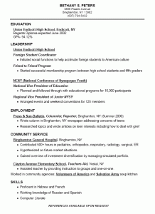 Free resume templates for highschool college students: babysitting, quick meals, warehouse, tutor, grocery retailer, supply, waitress, and extra. Obtain our High School Student Cowl Letter and get nice recommendations on methods to write an efficient cowl letter with little to no work expertise. Even with restricted work expertise, a highschool pupil can current knowledgeable picture with this resume template, which has room for summer time jobs, volunteer work A great way to get began in your resume as a highschool pupil is to take a look at examples of resumes and browse recommendations on what to incorporate and methods to format your resume. Use this highschool student resume example as a template on your personal resume. This resume features a resume abstract assertion. Suggestions are included as effectively. No expertise? No drawback! Use our resume template for high school students and knowledgeable writing information to show your schooling, extracurriculars, and volunteer work into .